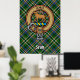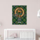 Clan Scott crest badge surrounded by a strap and buckle over green tartan background. Custom text.