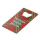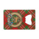 Clan Scott crest badge surrounded by a strap and buckle over red tartan background. Custom text on both sides.