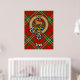 Clan Scott crest badge surrounded by a strap and buckle over red tartan background. Custom text.