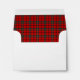 Envelopes with plaid liner feature the Scott family clan tartan pattern. Traditional vintage Scottish plaid from 1829 in bright red and forest green, with white accents. Matching personalised stationery and return address labels available.