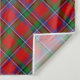 Clan Sinclair crest badge surrounded by a strap and buckle over red tartan background. Custom text.