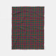 Fleece blanket with the Clan Skene tartan, a traditional Scottish plaid pattern dated to 1850 in red, forest green, and royal blue. Choose from three sizes.