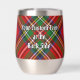 Clan Stewart crest badge surrounded by a strap and buckle over Royal tartan background. Custom text on both sides.