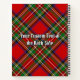 Royal Stewart crest badge surrounded by a strap and buckle over Royal tartan background. Custom text on both sides.