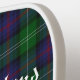 Pickleball paddle features Clan Sutherland Modern Tartan background with clan crest badge and customisable text overlay