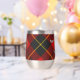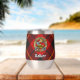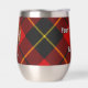 Clan Wallace crest badge surrounded by a strap and buckle over tartan background. Custom text on both sides.