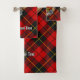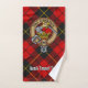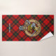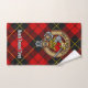 Clan Wallace crest badge surrounded by a strap and buckle over tartan background. Custom text on each towel.