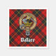 Clan Wallace crest badge surrounded by a strap and buckle over tartan background. Custom text.