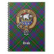 Clan Wood crest badge surrounded by a strap and buckle over tartan background. Custom text.