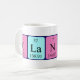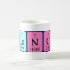 Clancy spelled out as C La N C Y (Carbon Lanthanum Nitrogen Carbon Yttrium) on a mug for the scientist in you.
