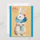 A charming vintage easter postcard featuring a cute bunny girl with a ruff around the neck and red flowers behind the ear, painted by the American illustrator/commercial artist Ellen Hattie Clapsaddle.