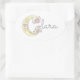 Pretty girls name sticker ideal for embellishing books and to personalised girls items. Stickers reads Clara or you can personalise with your own name starting in C. Graphic decorative C with hearts and flowers art © Designed by Sarah Trett www.sarahtrett.com for www.mylittleeden.com