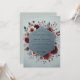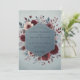 A moody and romantic composition for an elegant union. This painterly design features a stunning arrangement of deep claret and burgundy roses, accented with dusty pink blooms. Blue-gray eucalyptus leaves and delicate botanicals are artfully scattered against a soft, dusty slate blue background, creating a sophisticated and dramatic atmosphere.
