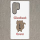 Do you like cute phone cases? This phone case features a brown cat with the words clarinet crew in pink.