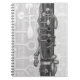 Jazzy musical themed black and white notebook with a charcoal drawing of the upper joint of a clarinet. Design includes a place for you to personalise with your initials. Original artwork by Angela Hoard-Dunn.