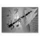 Clarinet with Musical Accents . Modern, classy and stylish musical themed canvas with treble clef, musical notes and featured musical instrument; the clarinet. Black and white.
