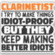 Funny Clarinetist Sayings "Clarinetist I Try To Make Things Idiot Proof But They Keep Making Better Idiots". Grab this Funny Clarinetist design as a funny gifts for an awesome mum, dad or friend.