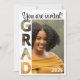 Stylish personalized graduation party invitation for NURSING Graduate, with customizable photo, name, year, university and message on the back. Designed with GRAD photo mask detail and in nurse grad color of apricot. Matching stationery and party supplies available.