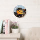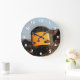 This wall clock is for a train enthusiast, as it has a photo of a class 37 diesel engine, number 37038, rounding a corner. The clock has easy to read numbers in white, and would make a great gift for a trainspotter.
