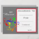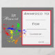 A stylish modern class art award certificate award with cute paint splash image perfect for encouraging a young art student. You can write in your own details. A great resource for any type of classroom teacher.