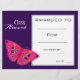 A stylish modern class award certificate award with cute butterfly image perfect for encouraging a young student. You can write in your own details. A great resource for any type of classroom teacher.