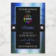 The design features a noble shimmering royal blue frame with fine decor lines, on a plain black background.