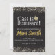 Class is Dismissed Teacher Retirement Invitation. Black with gold glitter