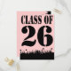 Pink and Black Silhouette Students Graduates Tossing Caps Class of 2026 Graduation Invitations