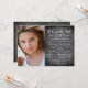 This 5x7 trendy photo Graduation Announcement / Party Invitation has a vintage style chalkboard design at the right. At the top and bottom, there is a flourish swirl design. Class of 2015 is written at the top, with all of your customisable Graduation Ceremony Announcement / Party details in the middle. On the left, you can personalise this with a photograph of the graduate.