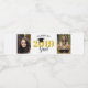 A classy graduation design on this water bottle label offers 2 photo frames with gold and black text reads: Class of 2018 Grad. A black mortarboard sits on top of the zero in the year.
