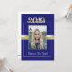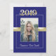 This blue & gold Class of 2019 graduation invitation can be customised to invite to commencement exercises and/or a graduation party in honour of the graduate. This would work well for male or female graduate. The front features a portrait of the graduating student prominently placed with the 'class of 2019' above the photograph and the grad's name beneath. There is also a faux ribbon across the middle behind the picture. The back contains all the information required to attend the festivities. A blue line and the 'class of 2019' are along the bottom edge. This invitation would work well for high school and college / university graduations.