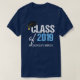 Class of 2019 custom t-shirt in blue with your own custom writing underneath. A cool graduating high school senior gift for graduation. A recent college graduate will also like this personalised tee.