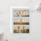 This modern design features three photos on the front, with modern text and a trendy mint green background, and all of your party information on the back.