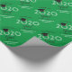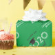 This graduation wrapping paper offers a 2020 graduation design in green, black and white with custom text for the graduate's name. The text reads: Class of 2020 Grad. A black mortarboard sits on top of the zero in the year. The background colour can be changed.