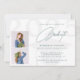 Modern teal and white graduate script senior class high school or college graduation invitation card with 2 custom photos and elegant contemporary typography.
