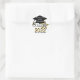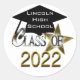 Cool, modern look "Class of 2022” graduation popular round shape envelope seals and stickers in stylish silver numbers graphic design on a clean white contrasting background and a black graduation cap graphic design with a gold tassel. A sparkling gold star also adds to this fun design. Easily add the school name, graduate's name or any custom text to personalise onto the graduation hat. Great for the whole senior graduating class!