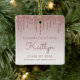 This chic, elegant graduation keepsake ornament feature a sparkly rose gold faux glitter drip border and rose gold ombre background. Personalize it with the graduate's name in dark rose handwriting script, with her class year and school below in sans serif font. Easily replace the sample image on the back with her photo. Ideal for high school or college graduation.