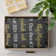The tissue paper is black. It has a text pattern for the graduate's name and Class of 2023. The name (Shown: Elizabeth) appears in an elegant faux (not foil) gold script. The other text is white. All of the text can be edited.