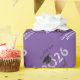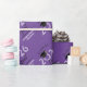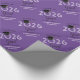 This graduation wrapping paper offers a 2023 graduation design in purple, black and white with custom text for the graduate's name. The text reads: Class of 2023 Grad. A black mortarboard sits on top of the zero in the year. The background color can be changed.