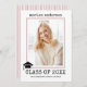 Class of 2023 typewriter dusty rose pink pink stripes graduation photo invitation. The back includes a dusty rose and white pattern with stripes.