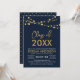 Elegant Graduation Party invitation that you can add your graduating year featuring strings of lights and the word "Class of" in faux gold foil against a dark blue background. Card has a matching polka dot back side.