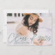 Invite guests to celebrate the grad with our stylish photo graduation invitations. The front of the graduation party invitations display the graduate's photo with "Class of 2023" in a green modern calligraphy script overlay. Personalize the front of the modern graduation party invites by adding the graduate's name, school name, and graduation year. The invite reverses to display your graduation party details and a trendy green and white dotted geometric pattern. The design is perfect for both high school and college graduates.