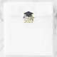 Cool, modern look "Class of 2023” graduation popular round shape envelope seals and stickers in stylish gold and silver numbers graphic design on a clean white contrasting background and a black graduation cap graphic design with a gold tassel. A sparkling gold star also adds to this fun design. Easily add the school name, graduate's name or any custom text to personalise onto the graduation hat. Great for the whole senior graduating class!