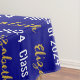 The tablecloth is navy blue. It has a text pattern for the graduate's name and Class of 2024. The name (Shown: Elizabeth) appears in an elegant faux (not foil) gold script. The other text is white. All of the text can be edited.