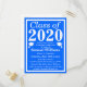 Show off your school spirit and honour your graduate with this Class of 2024 Blue White Graduation Postcard Invitation. Customise with your grad's class year, school and party details. It features a classic font in white against a blue background.