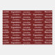 This dark red wrapping paper has a text template you can edit. You can change the white text to show your graduate's name, the year the student is graduating (shown: Class of 2024), and a custom message (shown: Congratulations). Congratulations and Class of 2024 are in an elegant script, but the graduate's name is not in a script.
