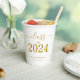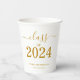 Stylish elegant custom graduation party supply! Celebrate the graduate's accomplishment in style with this trendy graduation party paper cups. Design features "Class of 2024" in gold font on a clean white background. Personalise this product by adding the name and school name. Easy to customise. Matching graduation party supplies available. Congratulations!