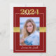 This maroon red & gold Class of 2024 graduation invitation can be customised to invite to commencement exercises and/or a graduation party in honour of the graduate. This would work well for male or female graduates. The front features a portrait of the graduating student prominently placed with the 'class of 2024' above the photograph and the grad's name beneath. There is also a faux ribbon across the middle behind the picture. The back contains all the information required to attend the festivities. A maroon red line and the 'class of 2024' are along the bottom edge. This invitation would work well for high school and college/university graduations.