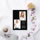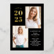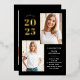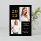 These modern and stylish grad party invitations feature three photos of the graduate, plus their 2024 graduation year in bold, gold foil text on a dark black background. Plenty of gold foil accents add an elegant touch to the front of the card.