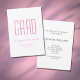 Graduation Class of 2024 Grad party invitation with a minimalist design. With pink and black typography customisable lettering, you can add your own text. A simple invite to plan that special celebration.